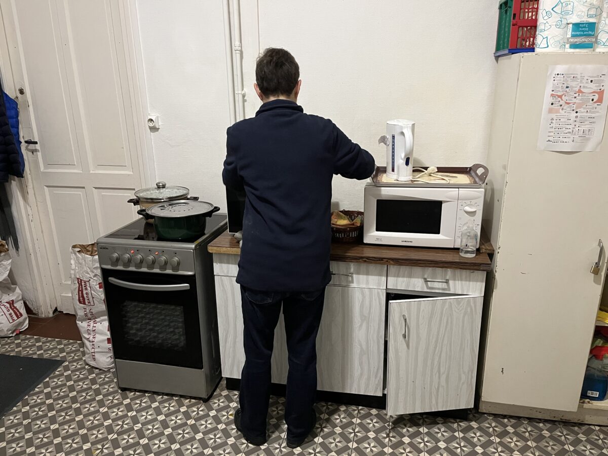 À 19 h, les premières personnes se pré­sentent. Avant d’entrer, un bénévole note leur prénom dans un carnet. Beaucoup sont des habitués. « On a un socle d’accueillis fidèles, certains viennent depuis plusieurs années », explique Christine. « Le bouche-​à-​oreille fonc­tionne bien, et on est aussi réper­to­rié par la mairie. » Les bols se rem­plissent, les conver­sa­tions s’installent. Saïd et Abes, deux amis ren­con­trés dans la rue, sont assis côte à côte. « On a toujours de la place et on vient quand on peut, confie Abes. Heureusement que ça existe. » Saïd ajoute : « Quand j’ai mes enfants, je viens avec eux. Ça fait du bien, surtout en hiver. » L’accueil repose sur des bénévoles réguliers ou de passage, mais les effectifs fluctuent. « Le week-​end, c’est plus compliqué car les bénévoles sont moins dis­po­nibles », reconnait Gersende. La salle est souvent complète le samedi car l’accueil avec une soupe est la seule ini­tia­tive ouverte le week-​end. A la fin du repas, certains restent un peu pour prendre un thé ou un café. D’autres repartent vite mais tous rap­portent leur bol en cuisine pour aider les bénévoles à ranger. Alors que les tem­pé­ra­tures chutent et que 163 personnes sans-​abri ont perdu la vie en 2024 dans les Hauts-​de-​France, ces gestes de soli­da­rité appa­raissent plus que jamais essentiels.