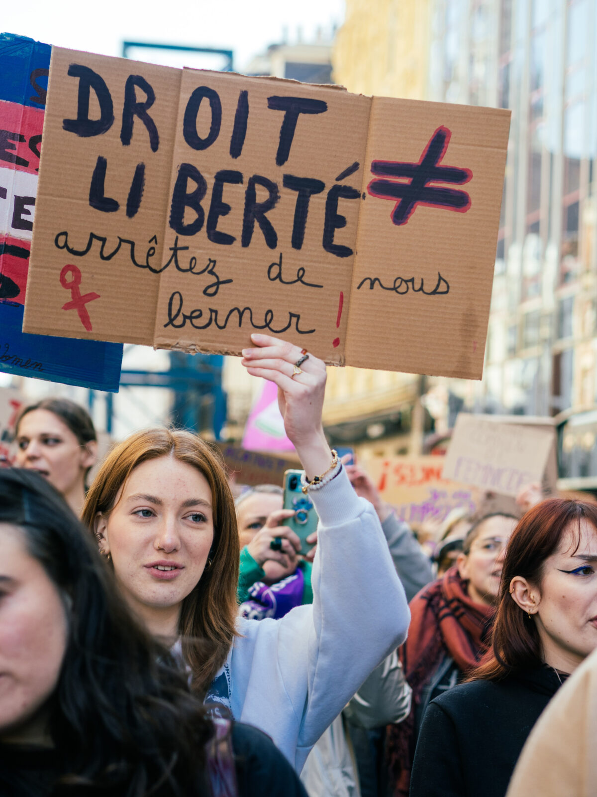 Dans le cortège, une pancarte attire l’attention. « Liberté ≠ droit, arrêter de nous berner ». Toutes ne semblent pas réjouies de l’inscription de la liberté d’avorter dans la constitution. « Ça ressemble un peu à un coup de communication, s’indigne Lison. Nous, ce qu’on veut, c’est le droit de recourir à une IVG, pas seulement la liberté. » Si le Sénat avait changé le mot « droit » par « liberté » en première lecture, ce changement n’est pas anodin. Il y a dernière une juridiction propre au vocabulaire utilisé. Axel Martin est juriste et il nous a éclairés sur cette nuance. « Pour mieux comprendre, prenons comme exemple le droit de grève et la liberté d’expression. Le droit de grève est une créance de l’État. Cela veut dire que l’État doit tout mettre en place pour que ce droit soit respecté. Quant à la liberté d’expression, nous avons le choix de nous exprimer ou non, mais dans les limites d’une loi définie par l’État. L’État peut en effet mettre des barrières, par exemple, nous avons la liberté d’expression, mais les injures racistes sont punies », explique-t-il. « Pour l’IVG c’est pareil. Puisque c’est la “ liberté ” qui a été inscrite dans la constitution, l’IVG reste soumise aux modalités de la loi, pour que cette liberté soit ou non appliquée. » En effet, la loi peut toujours limiter l’accès à l’avortement, que ce soit à des mineurs, ou à des minorités de genre. Axel Martin cite aussi la clause de conscience des médecins. « Un objecteur de conscience, n’est pas en devoir de pratiquer une IVG, même s’il doit rediriger les femmes qui souhaitent y recourir. En ce sens, il y a une barrière sur le terrain. » L’inscription de l’IVG dans la constitution reste tout de même une étape symbolique et unique au monde. La France avance en matière de droit des femmes, mais pour les manifestantes du 8 mars, il y a encore du chemin à parcourir.
