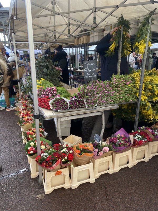 Il est à peine 10 heures et la place de la Nouvelle-Aventure déborde déjà de vie. Ici, on se fraye un chemin entre un stand de tissus aux couleurs vives, un fleuriste aux prix battant toute concurrence et un vendeur d’olives qui propose des dégustations à chaque passant. Les voix des commerçants se superposent, créant un brouhaha joyeux où chaque phrase tente de couvrir la précédente. « Je viens chaque semaine faire mes courses et discuter avec les commerçants. C’est un petit rituel que je ne louperai pour rien au monde » nous confie Françoise, croisée sur le marché.